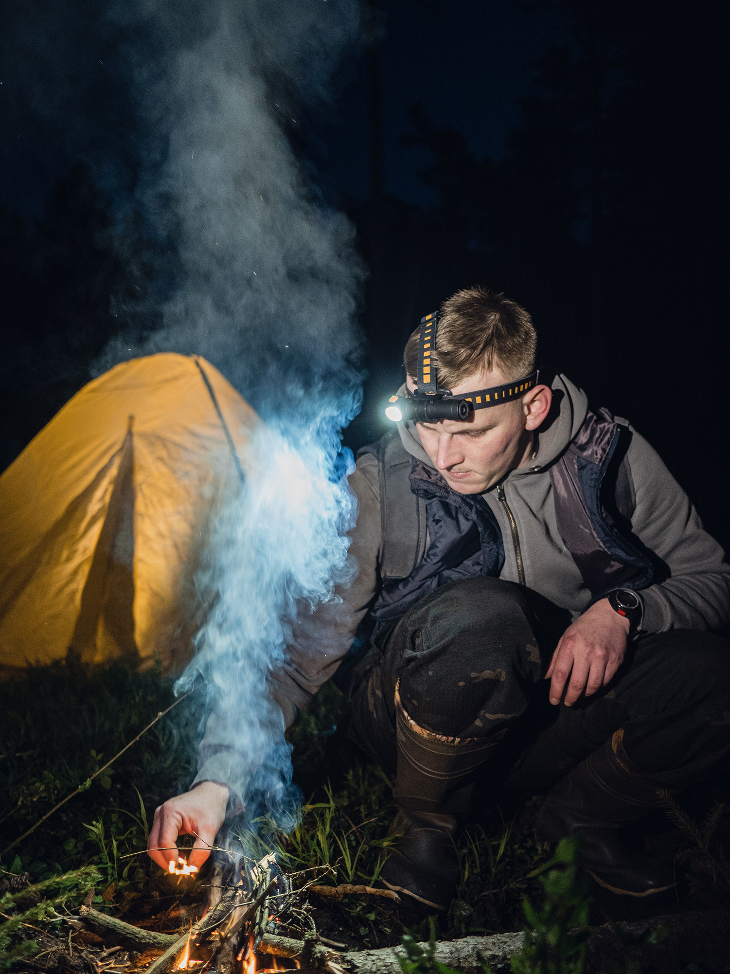 Удобное и легкое крепление с пластиковым держателем для комфортного использования фонаря на голове.