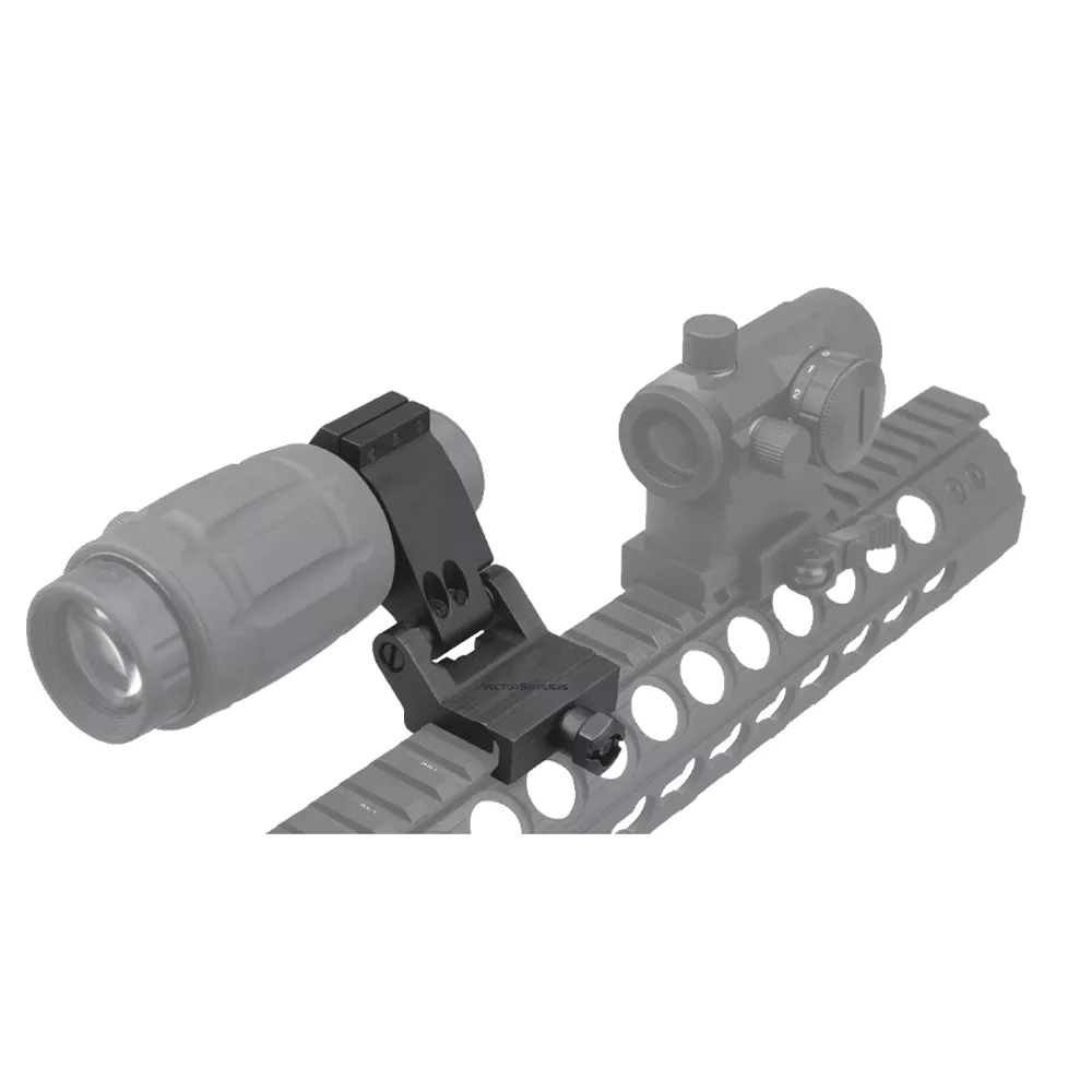 Магнифер фиксируется на специальном кронштейне, который крепится к планке. Кронштейн Flip Side имеет откидную конструкцию. Увеличитель легко убирается и возвращается на оптическую ось одним движением, без отрыва взгляда от точки прицеливания. Установка на планки Вивер или Пикатинни перед прицелом ближе к стрелку.