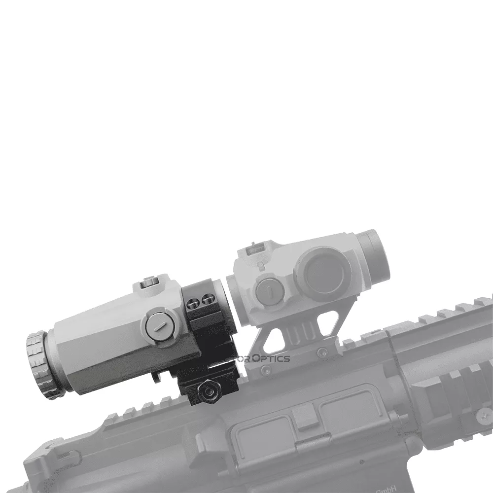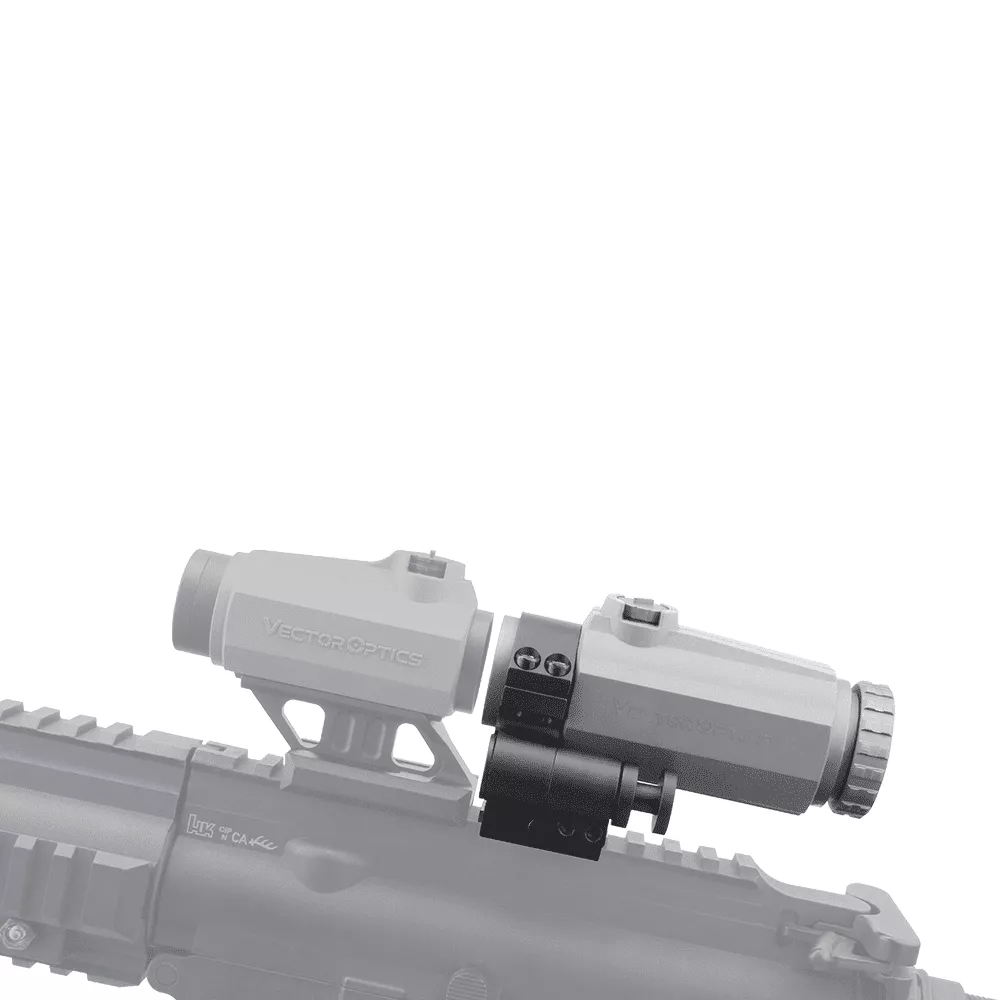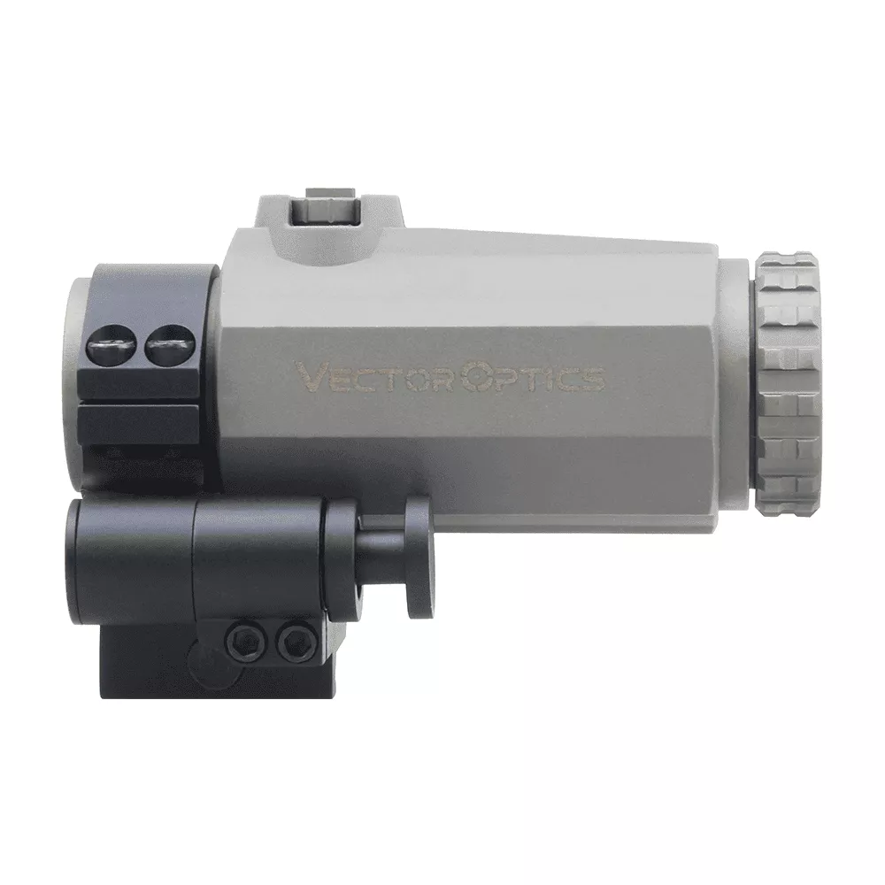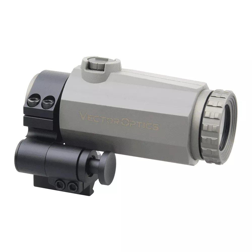 Увеличитель Vector Optics Maverick-III 3x22 Magnifier SOP, цвет FDE (SCMF-32) - компактный 3х-кратный увеличитель для использования с коллиматорными прицелами или отдельно в качестве монокуляра. Магнифер имеет быстросъемное крепление на Weaver/Picatinny. Механизм оперативного откидывания увеличителя в бок и его возвращения в исходное положение, позволяет быстро перейти от 1-кратного к 3-кратному изображению и обратно.